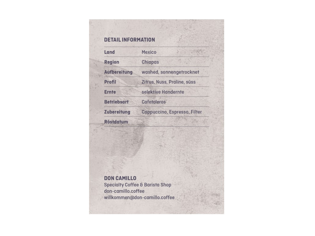 Dieser Specialty-Coffee stammt von Familienbetrieben, die der Cooperativa de producción Tzeltal-Tzotzil angehören. Diese Organisation ist in 26 indigenen Gemeinden im Norden von Chiapas, Mexiko, aktiv. Die Kaffeeproduzenten verarbeiten die geernteten Kaffeekirschen in ihrer eigenen kleinen Mühle, was eine sorgfältige Entpulpung, Fermentation und Trocknung ermöglicht. Die Anbauflächen sind durchschnittlich kleiner als 4 Hektar. Neben Kaffee verarbeiten die Mitglieder von Tzeltal-Tzotzil auch rund 80 Tonnen Honig. Die Produzenten setzen auf ökologischen Anbau, um die Umwelt zu schützen, und auf Qualität, um ein höheres Einkommen und damit einen besseren Lebensunterhalt für ihre Familien zu erzielen.
