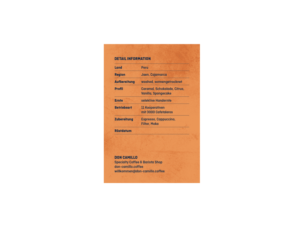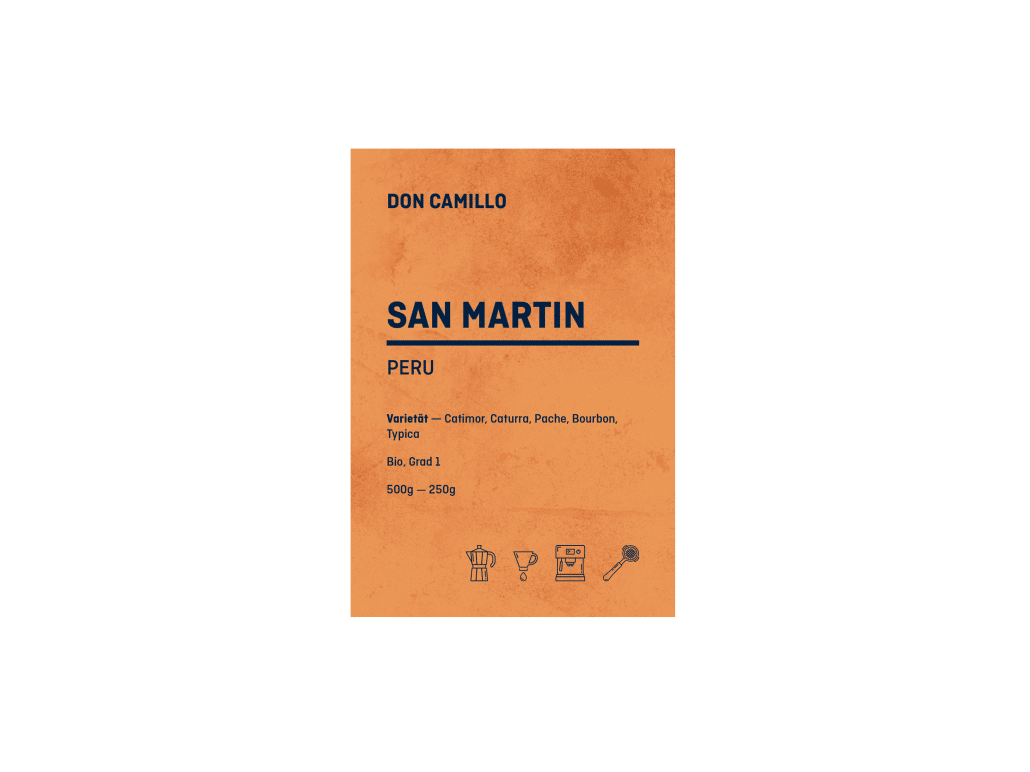 San Martin 100% BIO-Arabica wird von 11 Kooperativen und ca. 3000 Cafetaleros kultiviert. Es gehört zur Region Chanchamayo, eines der besten Kaffeeanbaugebiete Perus.
