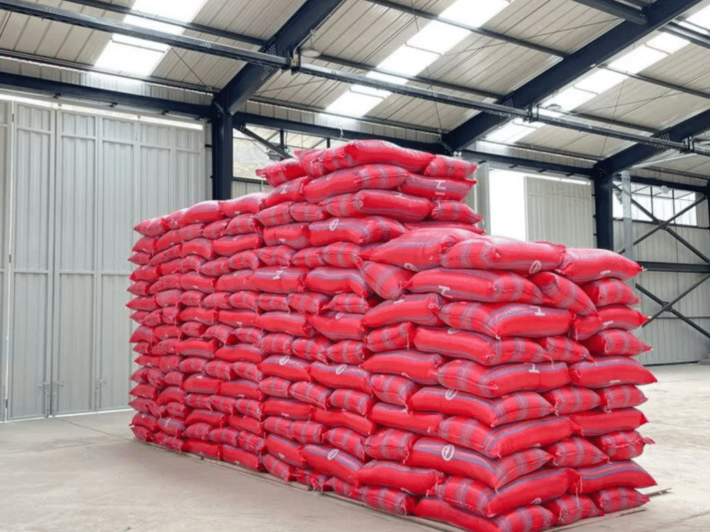 Mit GrainPro hermetisch geschützt, in Jutesäcke eingenäht.